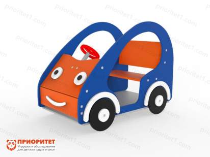 Пестрая синяя машинка с красным рулем предназначена для украшения игровой площадки детского сада, школьного или придомового двора, парка или стадиона. Модуль из ФСФ соответствует стандартам качества и безопасности. Подойдет для веселой игры детям от 3 лет.