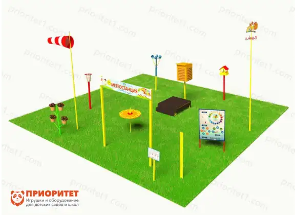 Метеорологическая площадка «Лайтс №2» предназначена для познания погодных условий и окружающего мира вместе с детьми. Представляет собой игровую площадку с наглядными пособиями и практическими предметами, с которыми дети могут определить сегодняшнюю погоду.