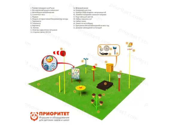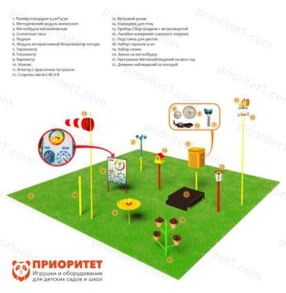 Метеорологическая площадка «Лайтс» (металлическая) – облегченный вариант линейки площадок. Отсутствие ограждения позволяет заходить на территорию площадки с любой стороны. Красочные приборы привлекают взгляд. Учебно-игровые занятия никогда не надоедают и не дают скучать. В любое время года можно найти чем занятся и какой опыт провести.