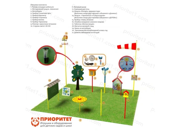 - Наблюдения за природой можно проводить в любое время года, поэтому метеоплощадка будет использоваться круглогодично, а дети смогут выходить из душного помещения на улицу.