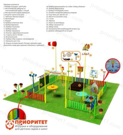 - Метеоплощадка поможет освоить детям работу с приборами и научит следить за природными явлениями, составлять рабочие планы и даже составлять собственный прогноз по результатам исследований.