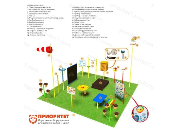 Метеорологическая площадка «ПРО» без ограждения (металлическая) для детских учреждений. Устанавливается на улице, на ровной поверхности. Детей привлекает не только яркий цвет, но и необычность оборудования. Все уроки окружающего мира и природоведения проходили скучно и неинтересно, а с метеоплощадками занятия превратятся в игру, и никто не захочет прогулять урок. Знакомство с природой проходит быстро и с интересом.