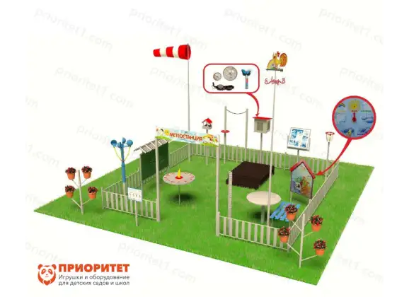 Метеорологическая площадка «Ретро №2» предназначена для проведения практических уроков природоведения. Представляет собой игровую площадку, на которой расположены различные измерительные приборы. Дети могут воспользоваться ими, чтобы узнать параметры сегодняшнего дня и похвастаться перед родителями.