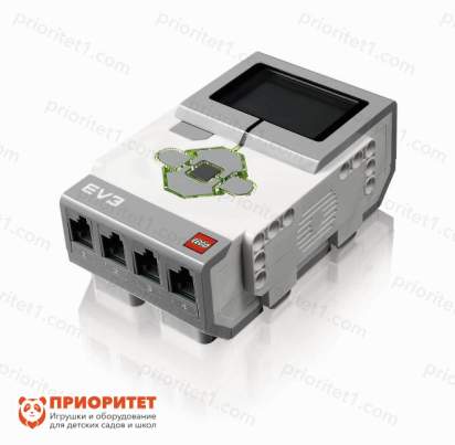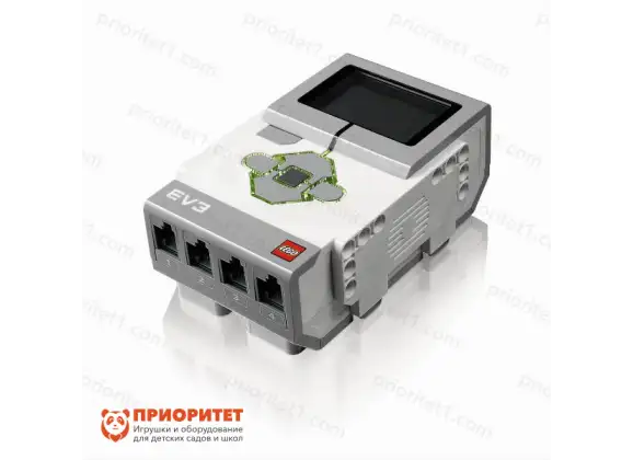 Микрокомпьютер EV3 выполняет функции интеллектуального блока, контроллера. Конструкция оснащена 6 кнопками. В зависимости от состояния выполнения программы, кнопочный интерфейс подсвечивается разными цветами (зеленый, оранжевый, красный), либо мигает. На встроенном дисплее изображаются графики и данные датчиков. При необходимости данные можно экспортировать. Для связи с компьютером, планшетом используется USB, WiFi или Bluetooth. Питание микрокомпьютера осуществляется от 6 батарей АА или от аккумулятора.
