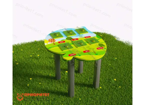 - В комплект входят объёмные фигуры-листья на цепочках, которые дети должны вставить в соответствующие выемки, а также изображения самих деревьев. Задача детей — соотнести каждое дерево с его характерным листом.