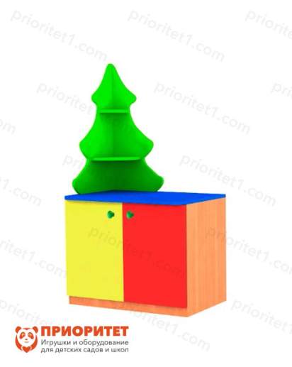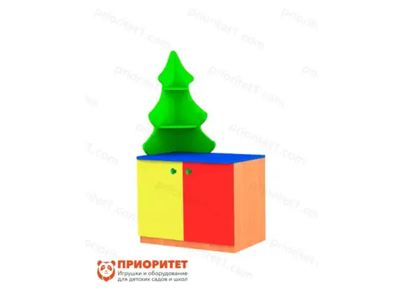 Небольшой предмет мебели предназначен для оформления пространства в группе детского сада. Модульный стеллаж «Елочка №1» имеет яркий дизайн. Верхнюю часть украшает угловая полка в виде елки. Нижняя часть закрывается дверцами. Облицовка стойкая к воздействию воды, моющим и дезинфицирующим средствам.