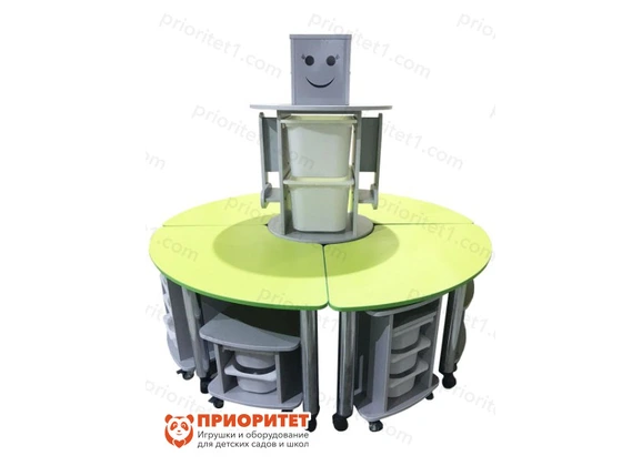 - 4 модульных стола, высота которых адаптирована под детский рост;
