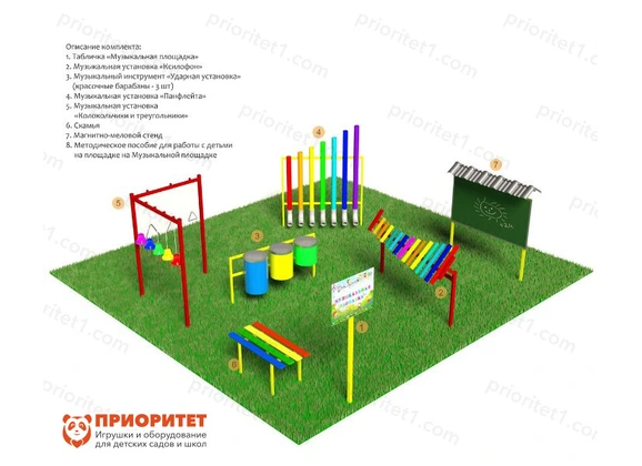 С музыкальной площадкой легко сделать занятия в детском саду увлекательными и интересными. Понадобится проявить немного фантазии и упорства. На прогулке дети сосредоточатся вокруг этой площадки и не захотят ее покидать. Товар предназначен для детских образовательных учреждений и рекомендован малышам от трех лет. Если у родителей есть возможность приобрести ее, то идеально подойдет для индивидуальной детской площадки, организованной в частном доме или на даче.