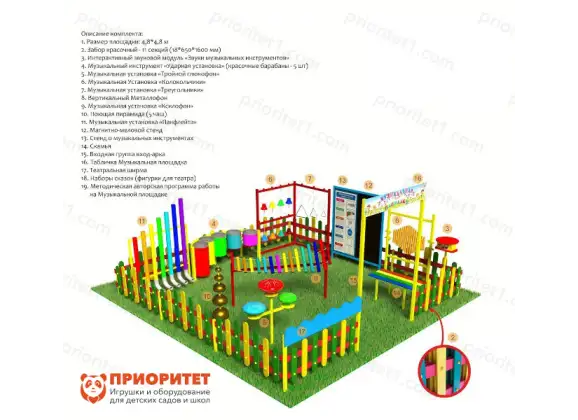 Данная музыкальная площадка подходит как способ для релаксации и снятия напряжения. Ее можно использовать даже взрослому, если в этом настанет необходимость. Малышам будет интересно осваивать разные музыкальные инструменты в действии. Товар ориентирован на детей от трех лет.