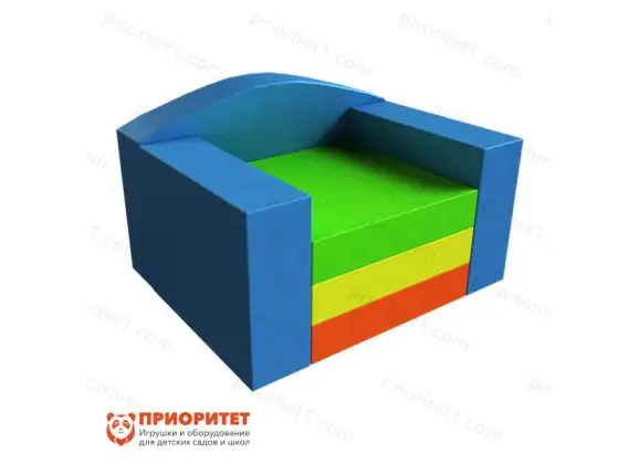 Мягкая детская мебель «Кресло» – многофункциональная конструкция, использование которой не ограничивается только креслом. Благодаря тому, что изделие состоит из 6 модулей разного размера, из них можно сложить кровать, лестницу, ограждение, использовать в качестве матов или барьеров.