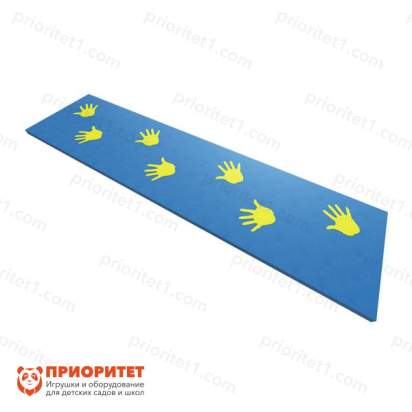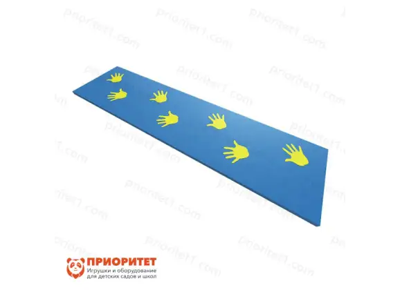 Мягкий дидактический коврик изготовлен в виде детской дорожки, на которую наносится изображение детских ладошек. Занимаясь с таким оборудованием, ребенок улучшает координацию движений, развивает физический каркас тела, учится выполнять ряд задач, не нарушая последовательность. Нагрузка допускается до 50 кг, а это значит, что прыжки взрослых нежелательны. Применяется коврик в развивающих центрах, дошкольных учреждениях, кабинетах логопедов, психологов и в домашних условиях.