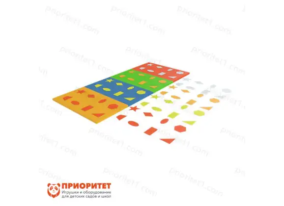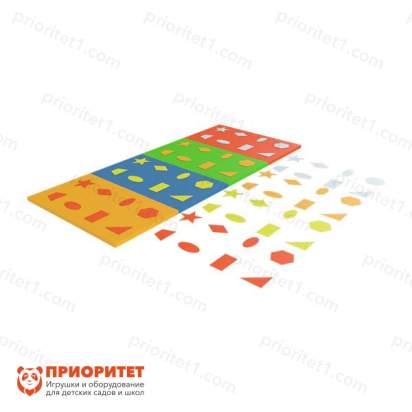Коврик изготовлен с целью изучения геометрических фигур, их сравнения, а также сортировке их по цвету и форме. С помощью мягкого коврика пополняются базовые знания об окружающем мире, а также развивается внимание и усидчивость. Применяется в дошкольных учреждениях, развлекательных центрах и домашних условиях.