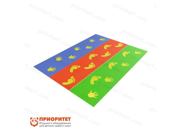 - Контрастные пяточки и ладошки, изображенные на дорожках, позволяют легче ориентироваться и развивают пространственное мышление;