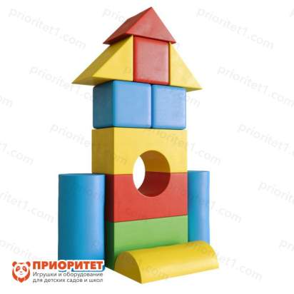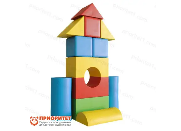 - Представляет собой конструктор из мягких деталей. Чтобы поднять крупную деталь, ребенок задействует обе руки – что развивает его хватательный рефлекс и симметричность движения рук.