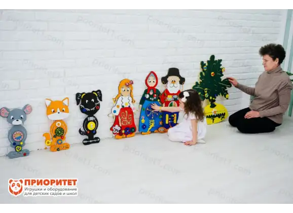 Набор содержит семь бизибордов, соответствующих всем героям известной русской народной сказки. Обращаясь к ним, ребенок сможет хорошо усвоить сюжет, запомнить персонажей – не только основных, но и второстепенных. В дальнейшем это поможет разобраться в особенностях других сказок. Товар предназначен для детей от 1 года до 7 лет.