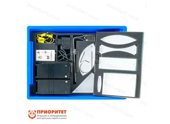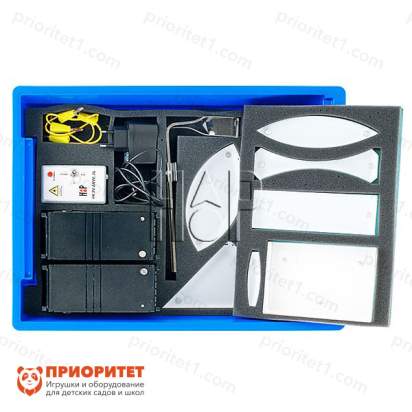 При помощи этого набора можно изучать геометрическую оптику. Дети научатся работать с соответствующим оборудованием и смогут провести первые эксперименты из этой области. Также дети познакомятся с основными приборами, используемыми в изучении геометрической оптики.