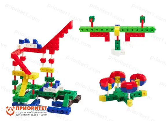 - Детали соединяются с помощью отверстий и штырей, что помогает развивать мелкую моторику