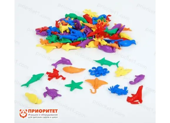 Набор фигурок для счета "Морские животные" предназначен для детей от 3-х лет, чтобы обучатся считать, выучить названия основных цветов и некоторых морских животных.