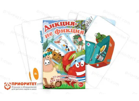 Набор карточек «Дикция не фикция» помогает ребенку развить речь, отработать правильное произношение различных звуков, научиться различать разные звуки, чтобы сформировать четкую дикцию.