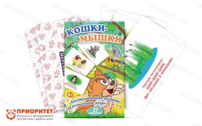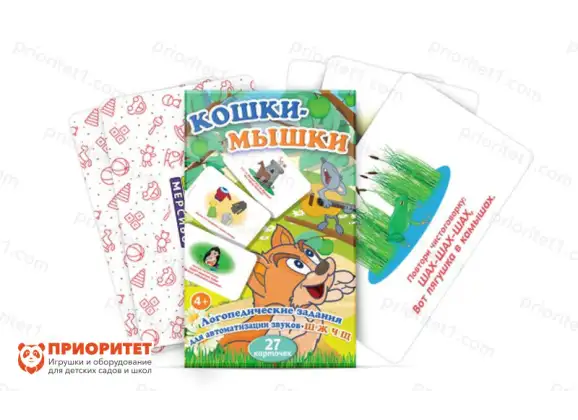 Дидактический набор карточек «Кошки-мышки» направлен на постановку, закрепление и автоматизацию таких сложных для малыша звуков, как Ч, Щ, Ш и Ж. Он выполнен в ярких красках и рассчитан на детей от 4 лет. Набор будет полезен логопедам, дефектологам, воспитателям, педагогам дополнительного образования и родителям.