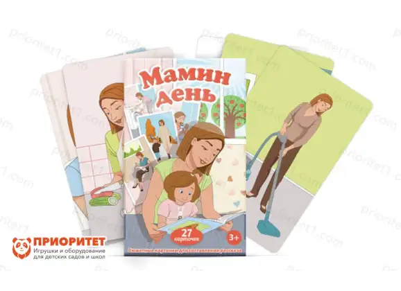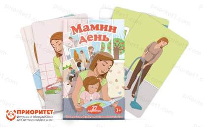 - Познакомьте ребенка с набором, предложите ему определить, чем занимается мама в течение дня, составить небольшой рассказ.