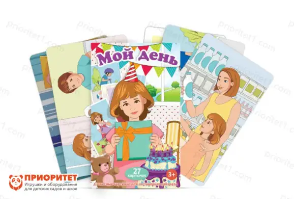 Набор обучающих карточек «Мой день» научит ребенка ориентироваться в распорядке дня, в игровой форме познакомит с возрастными обязанностями. Подходит ребятам от 3 лет. На карточках изображены действия, которые малыш выполняет в течение дня: умывается, обедает, гуляет. Набор рассчитан на использование в детских образовательных, воспитательных, развивающих учреждениях, кабинетах логопеда, дома.
