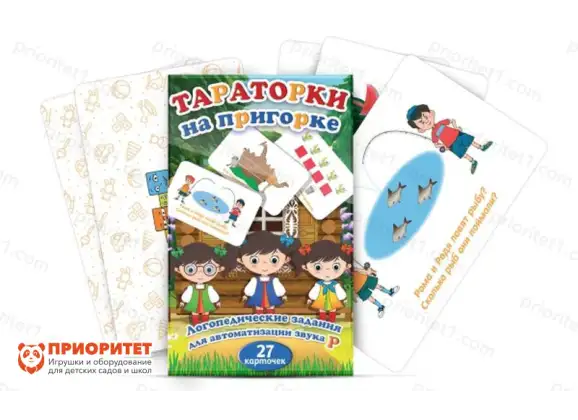 Набор карточек «Тараторки на пригорке» помогает ребенку научиться правильно и четко проговаривать звук «р» - в словах, фразах и предложениях, закрепляет его произношение, развивает моторику и логическое мышление.