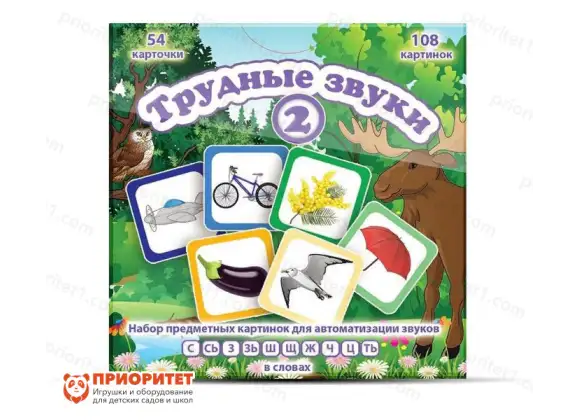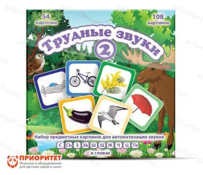 - Набор развивает произношение звуков (Сь, З, Зь, Ш, Щ, Ж, Ч, Ц, Ть, С). Картинки нацелены на получение чистого звука от ребёнка. Педагог дает задание, которое помогает ребёнку выговаривать отдельный звук или сочетание звуков. Упражнения полезны в качестве разминки перед уроком чтения и письма.