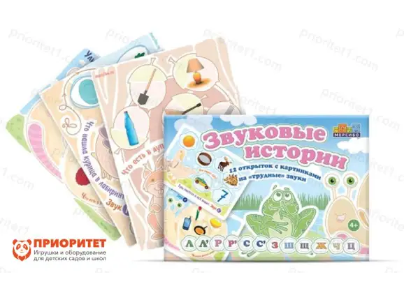 Набор карточек «Звуковые истории» в игровой форме помогает ребенку научиться правильно и четко произносить «трудные» звуки в разных словах и целых предложениях.