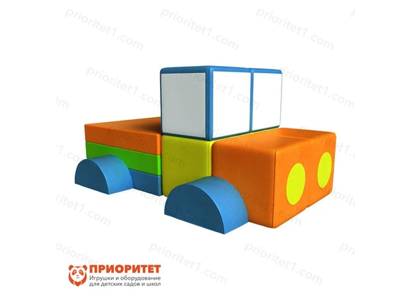 Набор мягких игровых модулей выполнен в виде пикапа с фарами и двухместной кабиной. Дети чувствуют себя опытными автомобилистами, изучают правила дорожного движения и учатся общаться друг с другом. Мягкие модули обеспечивают безопасность детей во время игры. Поролоновый наполнитель придает деталям легкость, поэтому малыши могут самостоятельно перемещать их. Поверхность, выполненная из винилискожи, обеспечивает сохранность внешнего вида изделия на протяжении долгих лет. Оборудование рекомендовано для использования в игровых комнатах детского сада, развивающего или развлекательного центра.