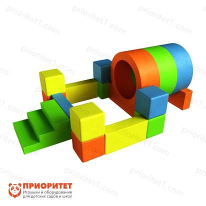 - Поролоновый наполнитель выдерживает большой вес, что позволяет заниматься детям разного возраста и использовать набор для других игр или просто посидеть на модулях во время групповых занятий;