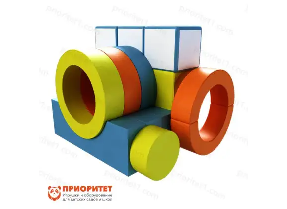 Мягкий яркий трактор состоит из ряда элементов, что могут применяться по отдельности для различных игр. С помощью комплекса развивается мышечный каркас ребенка, а также такие навыки, как координация, контроль тела, крупная моторика. Изготовлен модуль из мягких и безопасных материалов, подходящих для активных детских игр.
