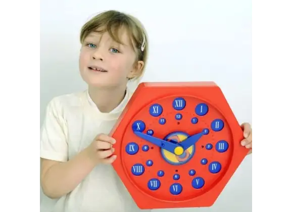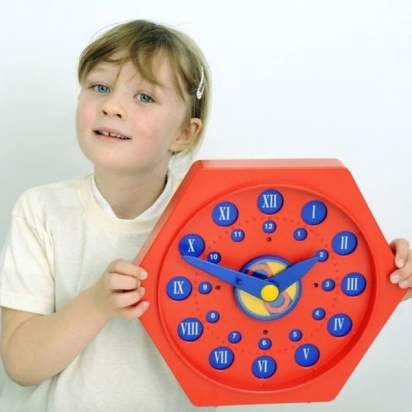 Часы могут стать отличным подарком на детский праздник. Они научат ребенка определять время и ориентироваться в нем в течение дня. Часы имеют съемный циферблат, на который нанесены две разметки. Одна разметка – 12-ти часовая, а вторая – 24-х часовая. Они сменяют друг друга, если крутить циферблат. Так, ребенок сможет запомнить, какая цифра соответствует обозначению времени в сутках. Например, 1 час – это 13 часов, 5 часов – это 17 часов и так далее.