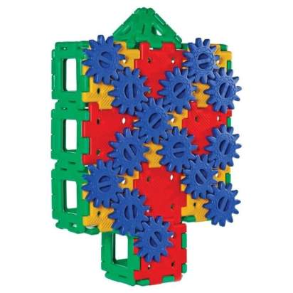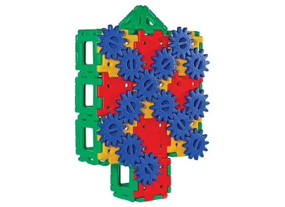 - Комплект: 58 деталей (24 квадрата, 4 треугольника, 10 квадратов с отверстиями, 20 шестеренок).