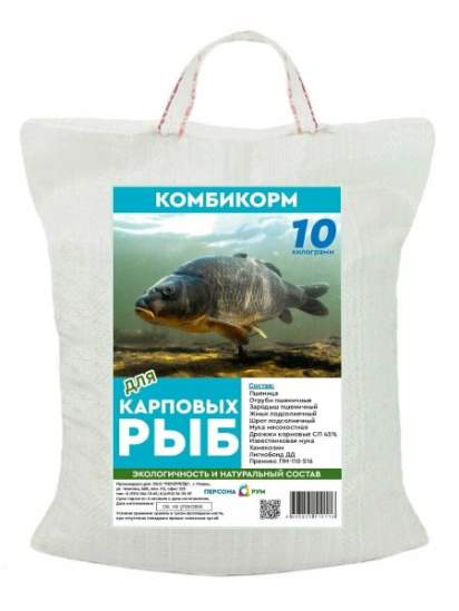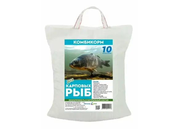 Набор различных комбикормов в рассыпном или гранулированном виде для карпа, радужной форели и других