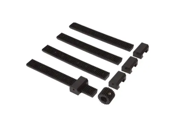 - Реечные передачи изготовлены из стеклонейлона, ведущая шестерня — из алюминия. Современные материалы отличаются практичностью и износостойкостью, они обеспечивают бесперебойное функционирование механизмов.