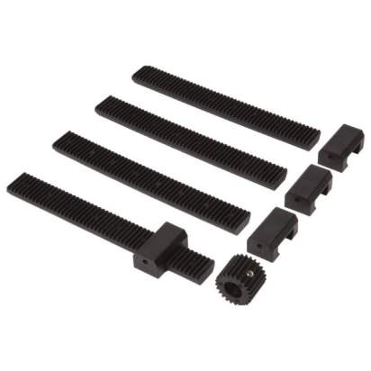 Набор реечной передачи TETRIX MAX включает в себя 4 реечные передачи длиной 5 дюймов, 4 ползуна и ведущую шестерню. Такой набор необходим для придания робототехнической модели конвейерной системы или вилочного подъёмника.