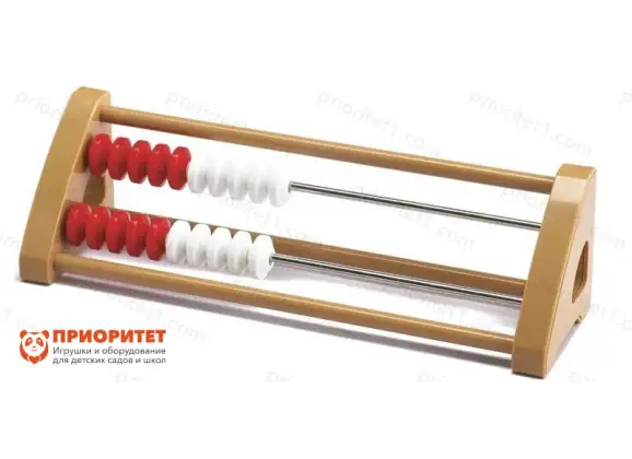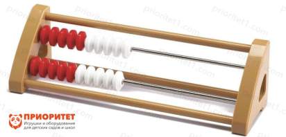 Этот набор представляет из себя двухрядные счеты, в каждом ряду 10 бисерин (пять красных и пять белых). Перемещая бисерины, ребенок наглядно познакомится с соотношением чисел, научится складывать и вычитать. Пособие значительно упрощает изучение состава числа, а также знакомит с понятиями «десятки» и «единицы».