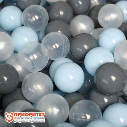 - Представляют собой яркие шарики, которые подойдут для бассейнов любой формы. Имеют небольшой размер, идеально подходящий для детских рук. Выкрашены в разные цвета: серый, голубой и прозрачный – цветовая гамма создает спокойную атмосферу и хорошо подходит мальчикам.