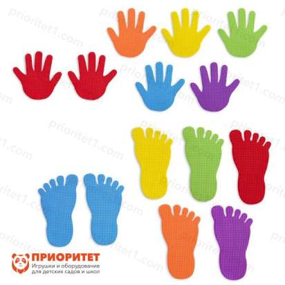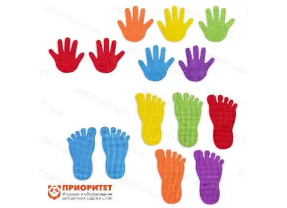 Подвижная игра для детей и их родителей станет отличным подарком на праздники и незаменимым элементом занятий физической культурой. Цветные следы рук и ног понравятся детям за их яркий и привлекательный дизайн, насыщенный цвет и веселье, которое дарит игра юным непоседам. В наборе есть два кубика, цветной и числовой. Кубики нужно бросать и по их результатам ставить руки и ноги на следы, то есть игра напоминает знаменитый «Твистер». Набор следов изготовлен из пластика, не скользкий, не вызывает аллергии. Соответствует ФГОС, подходит для ДОО и детских садов, детей младшего и старшего дошкольного возраста, детей с ограниченными возможностями от 3 лет. Цвет изделия: оранжевый, фиолетовый, красный, жёлтый, зелёный, синий.
