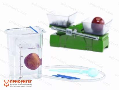 Набор «Сосуд Архимеда» – это научный инструментарий, предназначенный для проведения опытов с водой. Содержит материалы для демонстрации закона Архимеда, гласящего, что на предметы в воде действует выталкивающая сила. Задача детей состоит в том, чтобы повторить его опыт и вновь доказать ее действие.