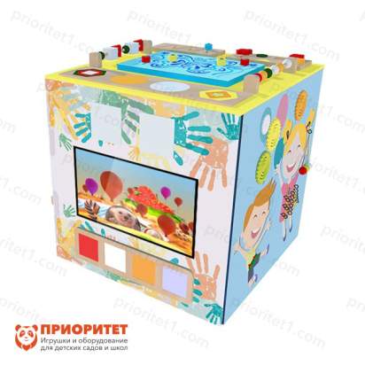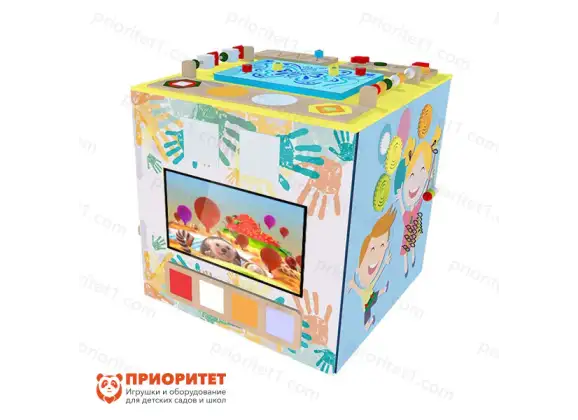 Напольный интерактивный бизикуб – современный развивающий комплекс для детей разных возрастов. Для малышей с рождения будет интересен сам бизиборд. На нем есть масса деталей, которые можно «оживить». Это шестеренки, счеты, кубики, песочные, механические часы и многое другое.