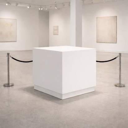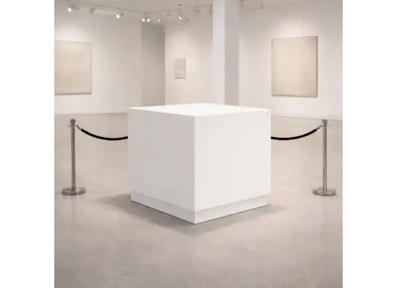 Напольный подиум-куб (пьедестал для экспоната) - лаконичная выставочная подставка для музеев, галерей, выставочных залов и шоурумов. Размеры: 80х80 см, общая высота 90 см. Белый нейтральный объём работает как «фон без шума» и подчёркивает главное - скульптуру, бюст, керамику, макет или предмет быта.