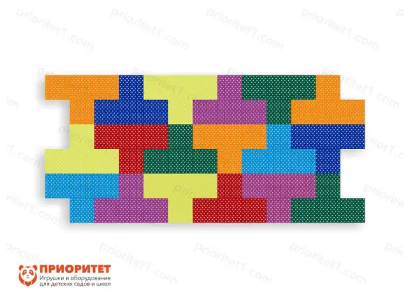 Настенная панель состоит из модулей разных цветов. Они крупные, имеют круглые отверстия по всей площади. Модули крепятся к стене с помощью дюбелей. Их можно размещать в любом порядке, расширять комплект, включая в него 9, 12 и больше модулей.
