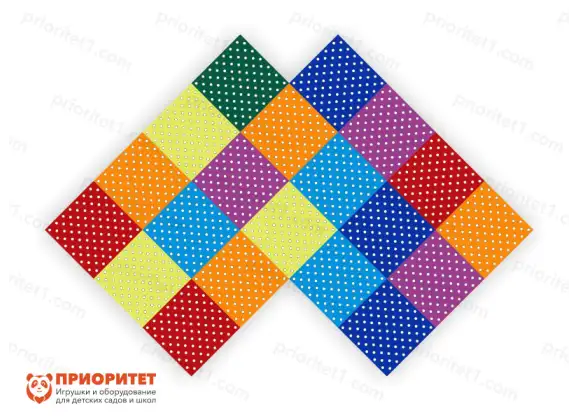 Настенная панель «Мега ромбы» (20 штук) - подойдет для стильного оформления и украшения максимально открытых стен в игровых, детских комнатах и развивающих центрах, а также для оформления подготовительных классов, так как на панель можно с легкостью крепить демонстрационный материал. Актуально размещение в группах детского сада и в начальных классах. Фрагменты панели имеют квадратную форму, их можно располагать прямо и по диагонали, как ромб. Панель можно разместить целым собранным фрагментом, либо небольшими произвольными элементами. На поверхности панели имеются отверстия, которые помогут закрепить полки, декор, картины и многое другое.