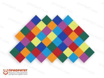 Яркое решение для игровой комнаты – настенные панели в виде ромбов. Это большие четырехугольники правильной формы с множеством круглых отверстий по всей площади. Они крепятся к стене с помощью дюбелей. Можно менять расположение сот и сочетание цветов, объединять наборы.