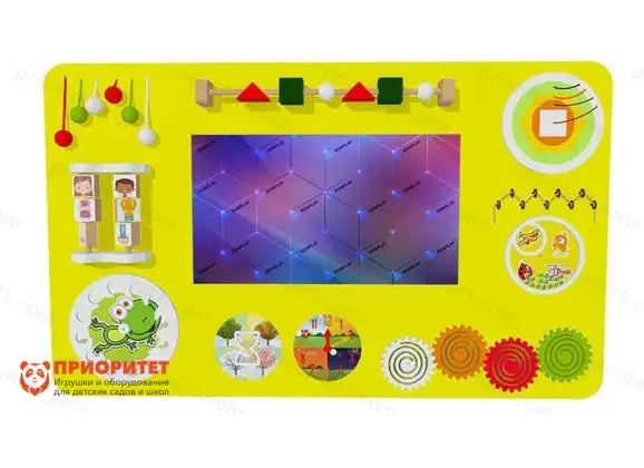 - Внутри бизиборда имеется сенсорный экран, который включается при малейшем прикосновении пальца.