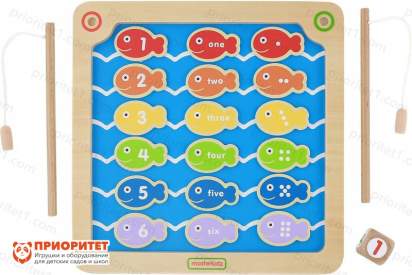 - Панель «Рыбалка» изготовлена из дерева и окрашена безопасными красками. Все детали тщательно отшлифованы, их поверхность гладкая и приятная на ощупь. Игра отвечает требованиям ФГОС ДО и рекомендована детям в возрасте от 2 до 7 лет.