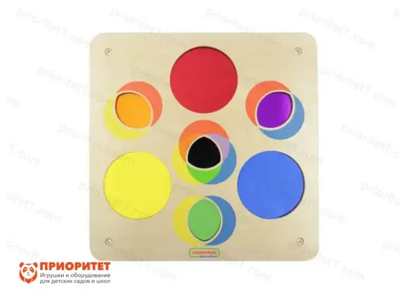Панель «Смешиваем цвета» – это развивающая игрушка, предназначенная для изучения цветовой палитры и самостоятельного смешивания оттенков. Представляет собой деревянную панель с цветными окошками, которые наглядно показывают, какие оттенки получаются при смешении двух или трех цветов.