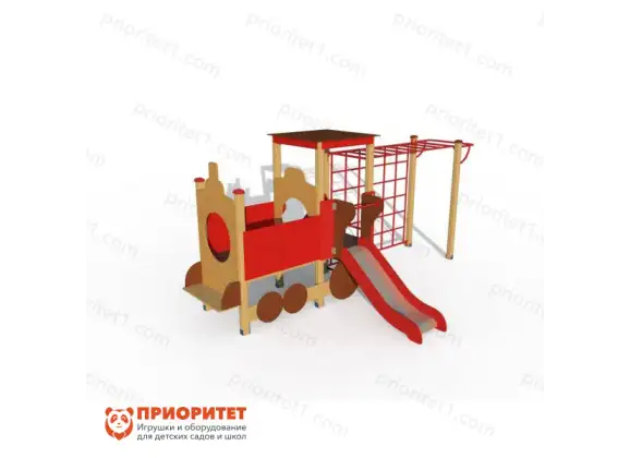 Конструкция из основной части в виде паровозика, рукохода, веревочной лестницы и горки является единым целым, не требующим дополнительных аксессуаров.